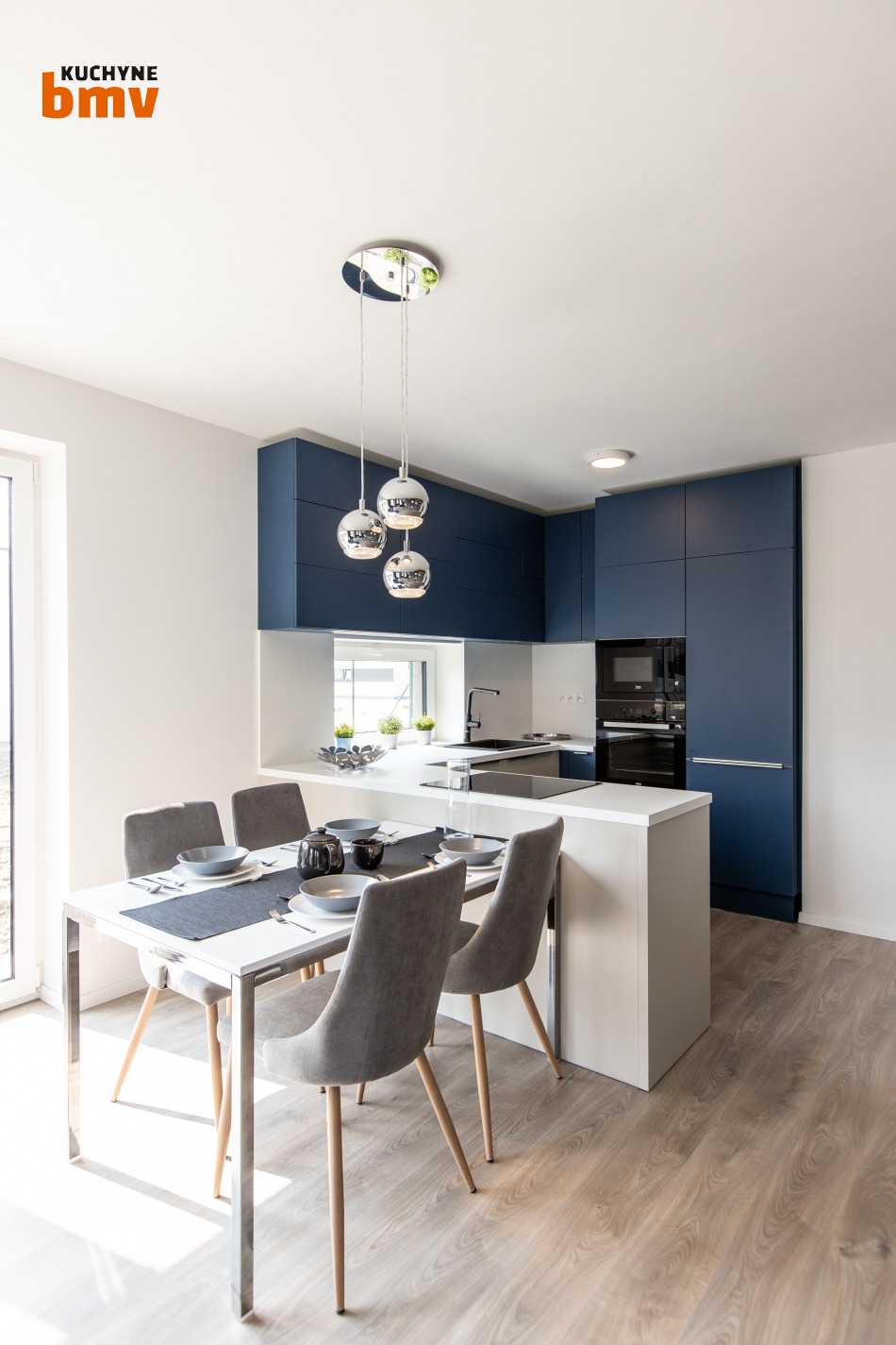 Jedinečná a funkčná modrá matná kuchynská linka na mieru do novostavby. Navrhnutá a vytvorená pre projekt BERNOLAKOVO GARDENS. S dostatkom úložného priestoru vďaka skrinkám, ktoré vyplnili priestor až po strop. Moderný bezúchytkový systém a vstavané spotrebiče. Moderná kuchynská linka - dekor matný rovné dvierka. Pracovná doska Egger s ochranným ultrafialovým lakom pre vysokú kvalitu a dlhú životnosť.